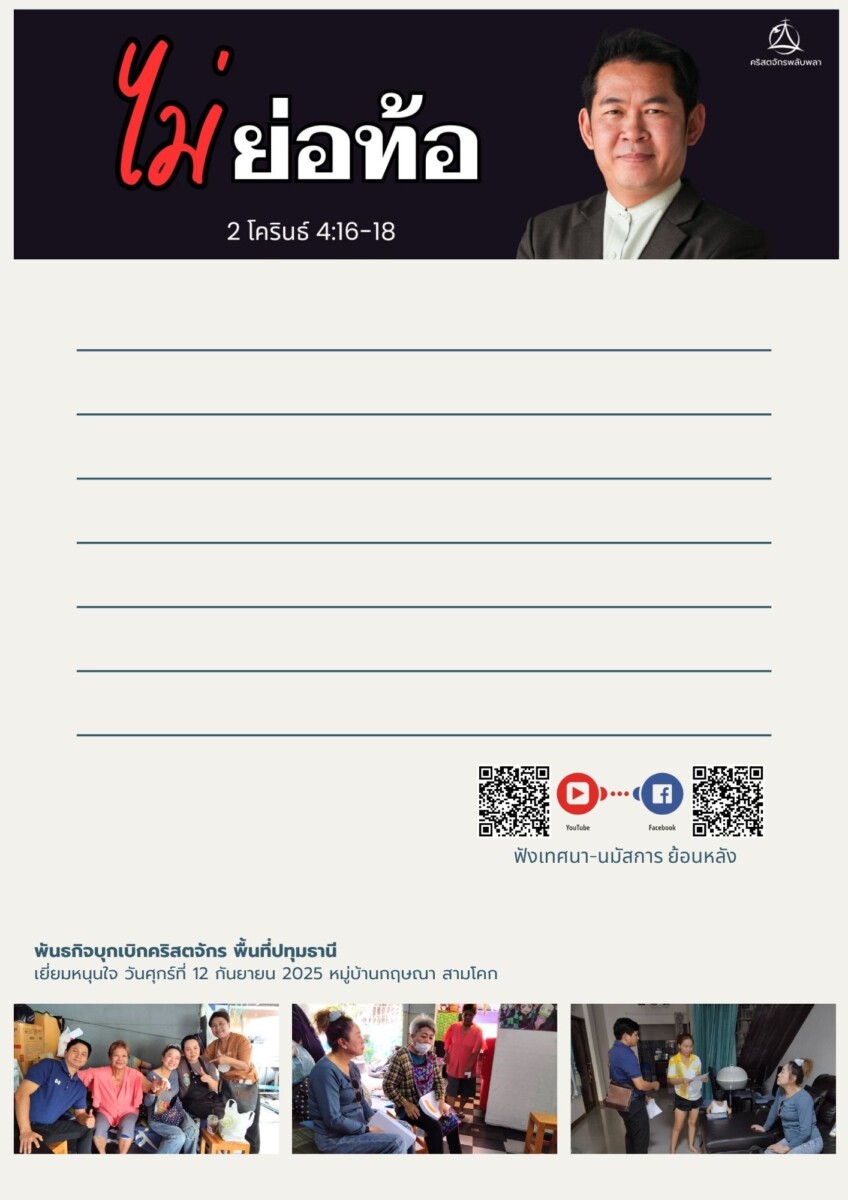 เราจะไม่ย่อท้อ แต่จะเอาใจใส่ในสิ่งที่ไม่มองเห็น