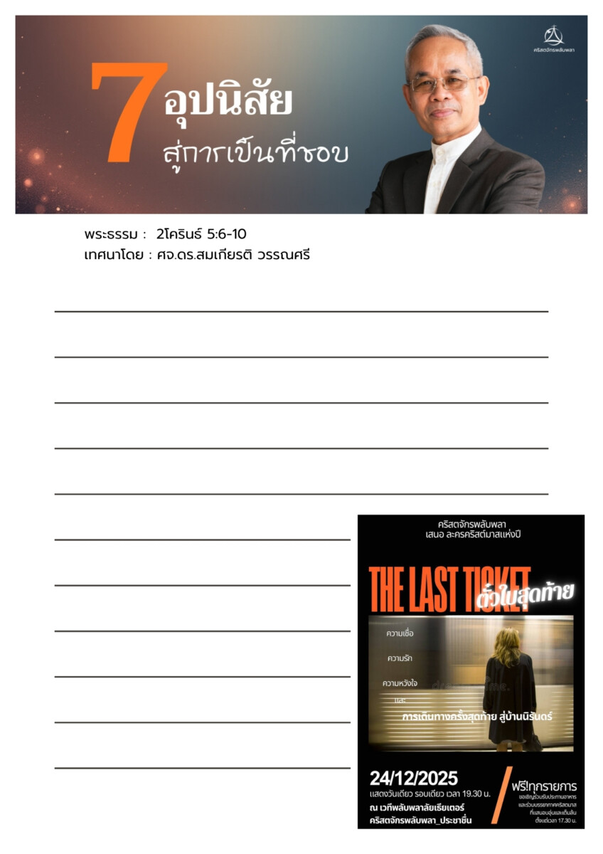 บทเทศนานี้มุ่งเน้นที่การพัฒนา “7 อุปนิสัย” ที่จะนำไปสู่การเป็นที่รักและที่พอใจของทั้งพระเจ้าและผู้คน โดยอ้างอิงและตีความจากชีวิตของอัครทูตเปาโล ไม่ใช่เพียงแค่แนวคิดทางโลกของสตีเฟน โควีย์ หัวใจสำคัญคือการเน้นย้ำว่าผู้เชื่อต้อง “ทำตัวเป็นข่าวประเสริฐก่อนออกไปประกาศ” ซึ่งหมายถึงการมีชีวิตที่เปลี่ยนแปลงและเป็นแบบอย่างทางวิญญาณอย่างชัดเจน อุปนิสัยทั้งเจ็ดประการที่ส่งผลต่อการเป็นที่ชอบ ประกอบด้วย ความมุ่งมั่น ความจริงใจ ความมั่นคงในจิตใจ ความสัตย์ซื่อ ความสุภาพอ่อนโยน การประพฤติตัวอย่างปราศจากตำหนิ และความรอบคอบในการดูแลผู้อื่น ซึ่งทั้งหมดนี้จะต้องอาศัย “ฤทธิ์เดชอำนาจของพระเจ้า” ในการเปลี่ยนแปลงภายในอย่างแท้จริง ไม่ใช่เพียงแค่ความพยายามส่วนตัวเท่านั้น.