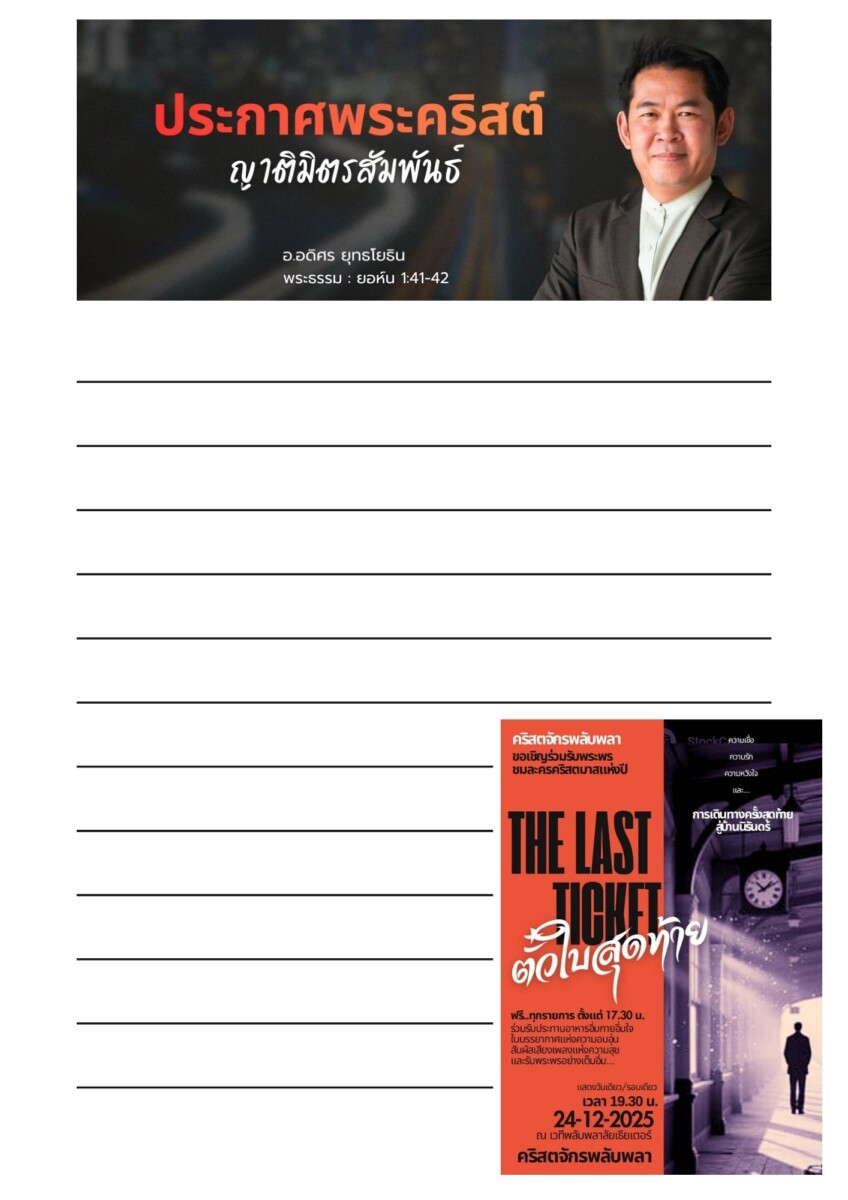 - อธิษฐานเผื่อ: อธิษฐานขอให้พระเจ้าเปิดใจและให้พวกเขาหิวกระหายหาพระเจ้า,